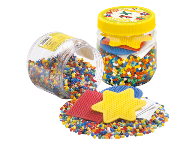 Vor allem die Kreativität wird durch das Legen von neuen Bildern gefördert. HAMA Bügelperlen bereiten jeder Altersgruppe großen Spaß. Durch die unterschiedlichen Größen lassen sich sowohl riesige, als auch detaillierte Muster legen. In dem Midi Bügelperlen-Set Dose sind 4000 Bügelperlen und Stiftplatten enthalten. Im beiligenden Eimer können alle Bügelperlen verstaut werden. Achtung: Nur unter Aufsicht eines Erwachsenen verwenden!