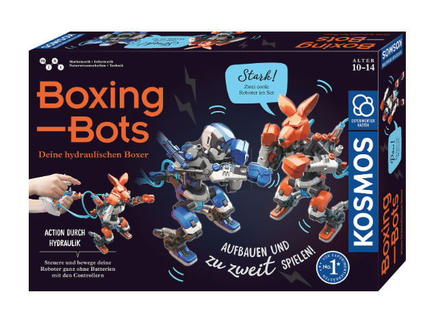 Hier geht’s um mehr als Boxen! Denn mit den Boxing Bots von KOSMOS wird Physik voller Action erlebbar. Die beiden im Experimentierkasten enthaltenen Roboter-Bausätze lassen sich ohne Schrauben zu zwei Bots zusammenbauen, die mit spektakulären Schlägen, Block- oder Ausweichmanövern im Ring gegeneinander antreten können. Dank der enthaltenen Punktezähler ist immer klar, wer gerade vorne liegt, und die Strategie der beiden SpielerInnen entscheidet über Sieg oder Niederlage.