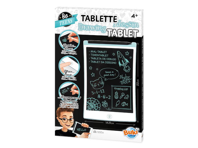 Auf dem Mal-Tablet mit LCD-Bildschirm kannst du schreiben, malen oder dir Notizen machen. Zum Schreiben benutzt du den Touchpen einfach wie einen Stift. Ein Knopfdruck genügt und alles ist gelöscht! Das Tablet wiegt nur 100g und lässt sich überallhin mitnehmen. Maße: 22x14,5 cm. Erfordert eine CR2016-Batterie (im Lieferumfang enthalten). Ab 4 Jahren.