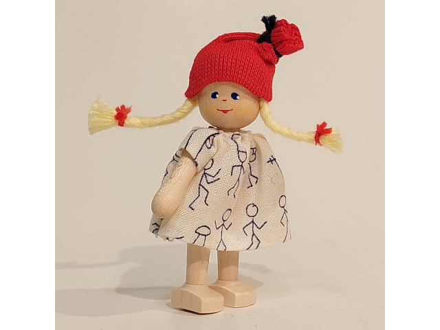 Die Holzgelenkpuppen sind bei den Puppenkindern 7,5 cm und bei den Erwachsenenpuppen 12,5 cm hoch.