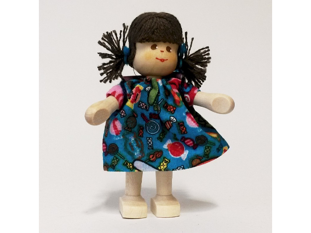 Die Holzgelenkpuppen sind bei den Puppenkindern 7,5 cm und bei den Erwachsenenpuppen 12,5 cm hoch.