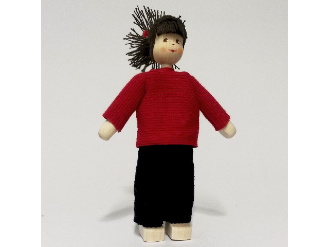 Die Holzgelenkpuppen sind bei den Puppenkindern 7,5 cm und bei den Erwachsenenpuppen 12,5 cm hoch.
