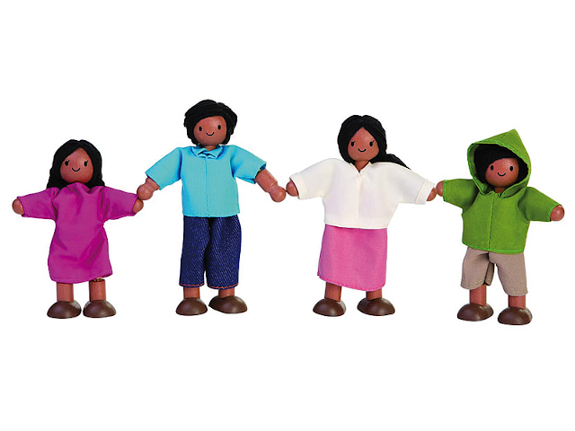 Mediterrane Puppenfamilie, bestehend aus Vater, Mutter, Tochter und Sohn.