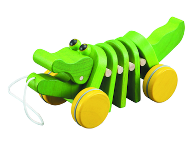 Sieh, wie der Alligator tanzt! Zieh ihn hinter dir her, dann macht er dabei rhythmische Klick-Klack-Geräusche. Dieses Spielzeug von PlanToys fördert die Bewegung und ermutigt Kleinkinder in der ersten Phase des Laufenlernens.